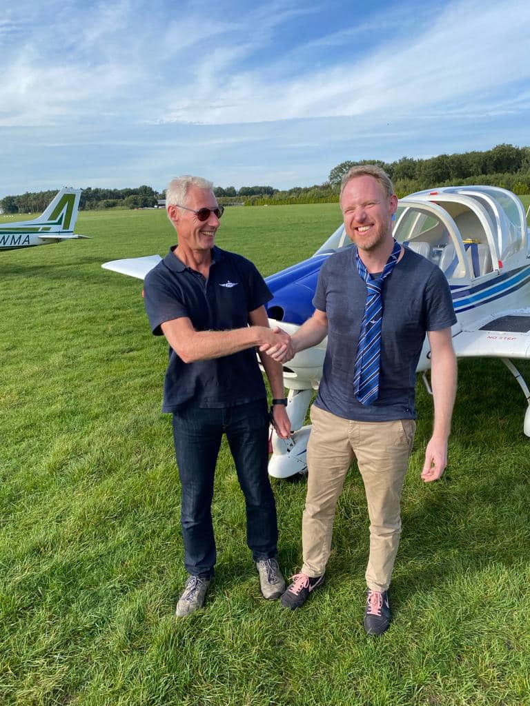 Er was nog een trotse gebeurtenis: de ervaren vlieger Sietse heeft als Flight Instructor zijn eerste solo leerling “losgelaten”. Dus dubbele felicitaties heren! En Johan heel veel succes toegewenst met het vervolg van je vliegopleiding richting PPL(A)-SEP!